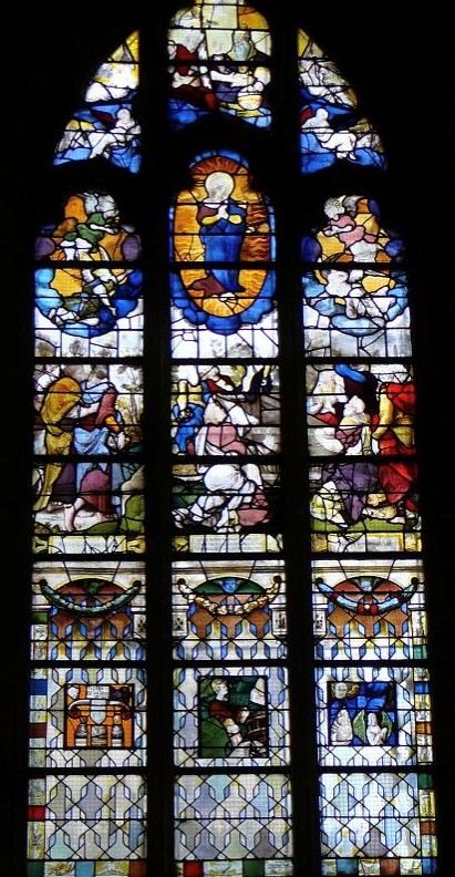 en 1558 le vitrail de la Vierge ornant Notre-Dame-de-Pitié, est connu. Mais il ne fut pas seul. Les testaments des habitants